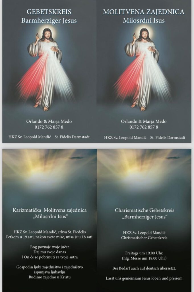 Karizmatska molitvena zajednica „Milosrdni Isus“ poziva vas na zajedničke molitvene susrete. Naša Majka, Gospa Međugorska, Kraljica mira, poziva nas da se priključimo molitvenim zajednicama i molimo u ovim teškim i izazovnim vremenima.